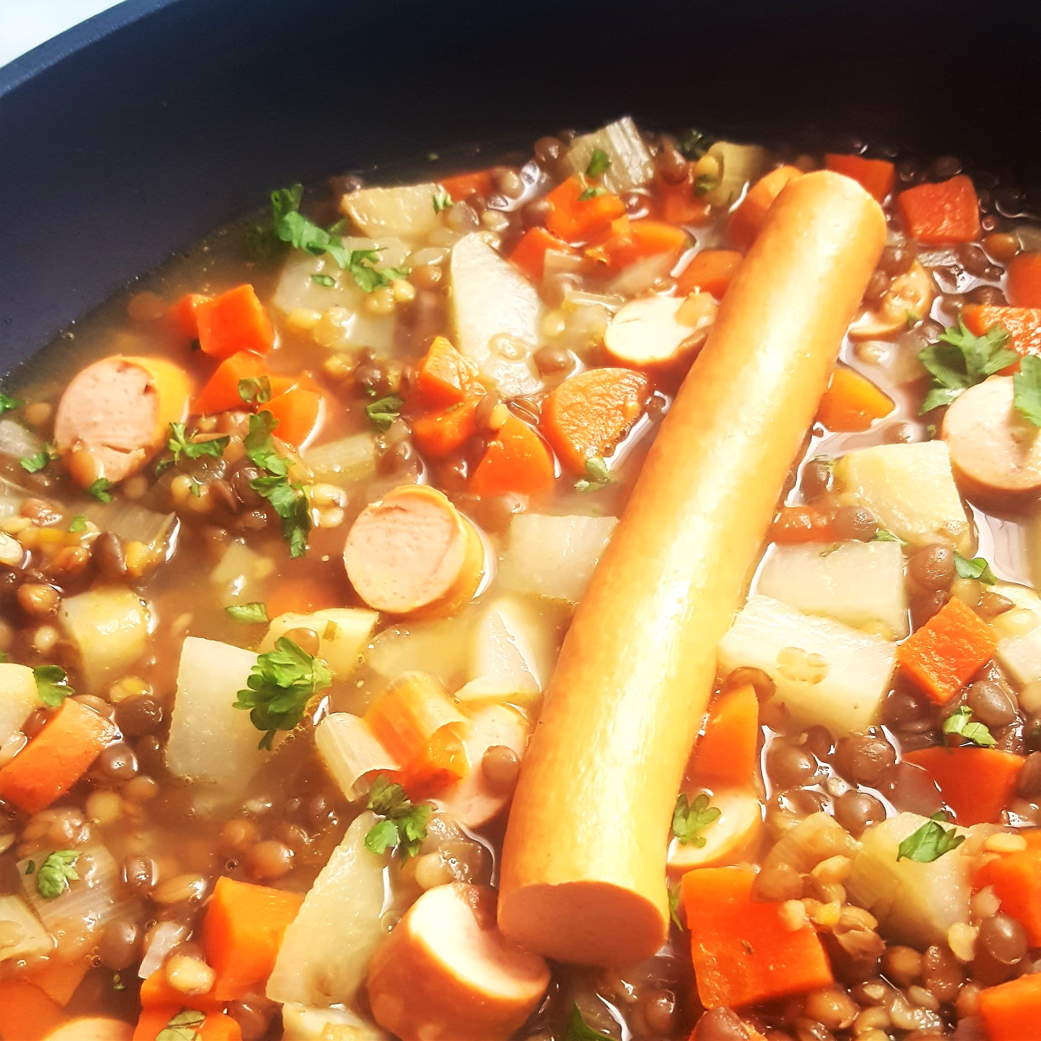 Herzhafte Linsensuppe mit Wiener Würstchen