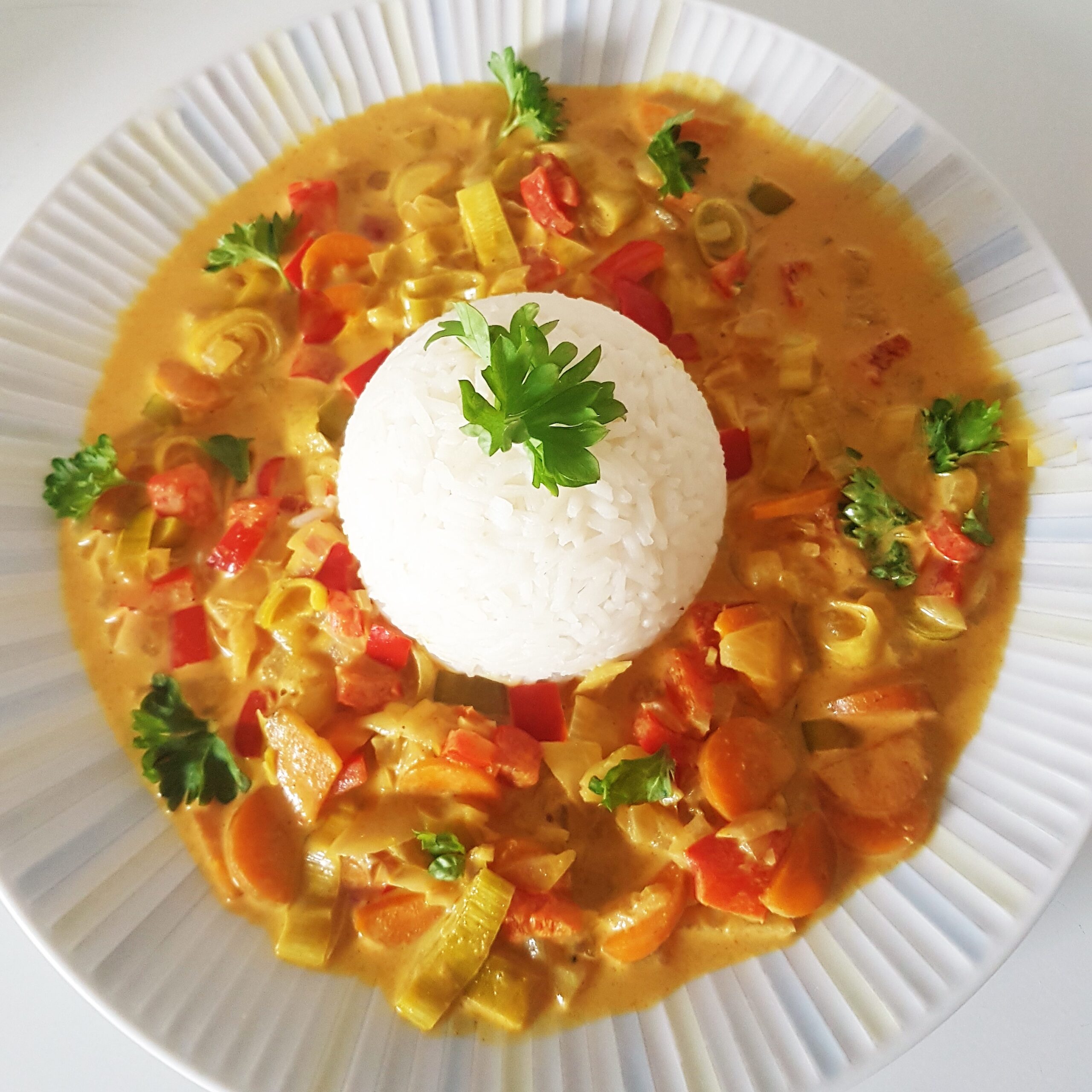 Vegetarisches Low-Carb Curry, mit Kokosmilch, Paprika, Karotte und Porree
